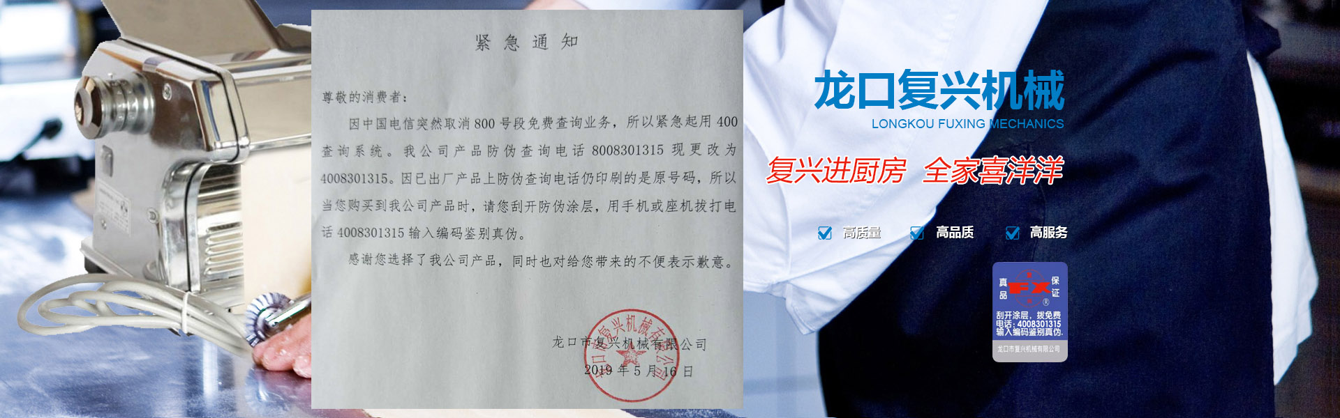 龙口复兴机械有限公司主营面条机,压面机,饸饹面机 网站地图 | 免责声明